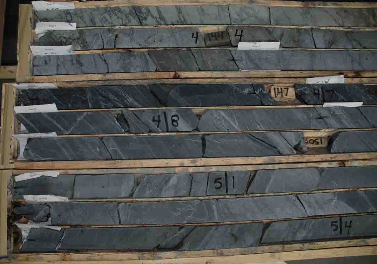 Photo Above: This core has the reference marks established at 1.00 meter intervals The original depth markers in this core are near perfect core with all the original drill markers very near 3.00 meters apart.